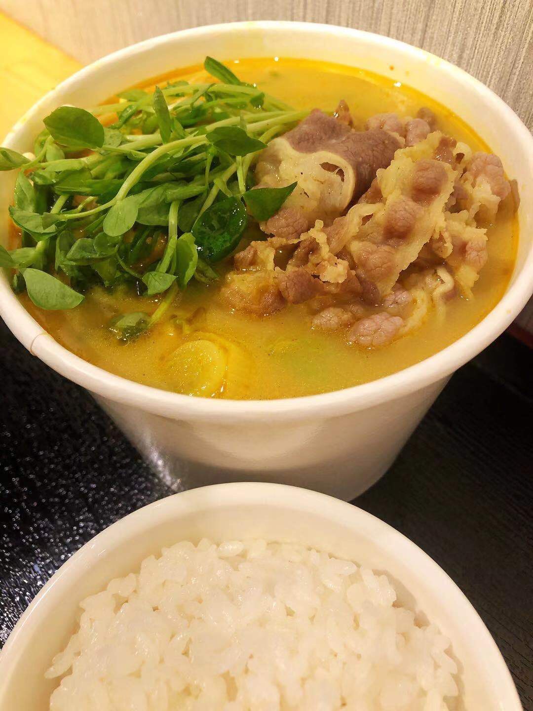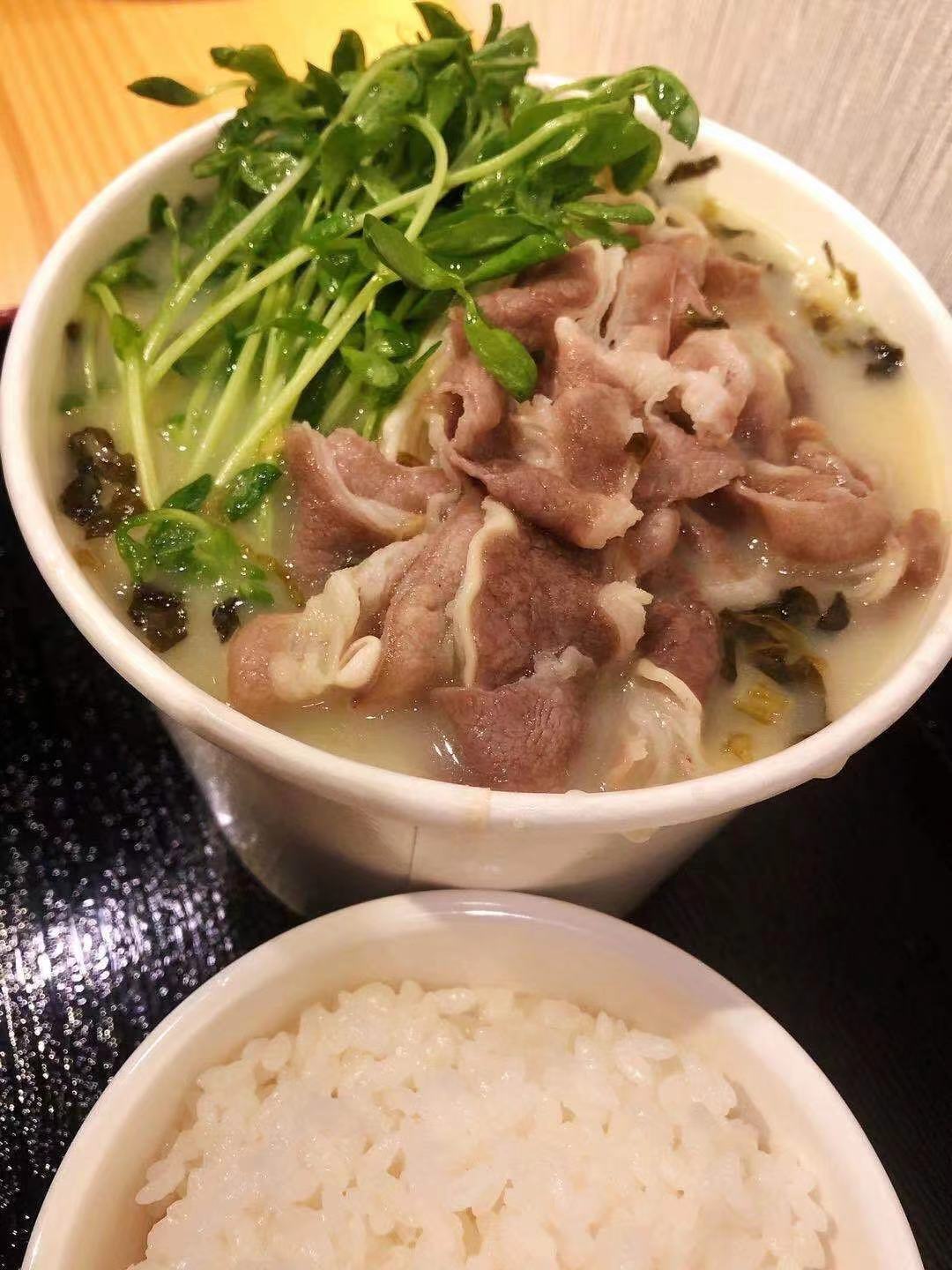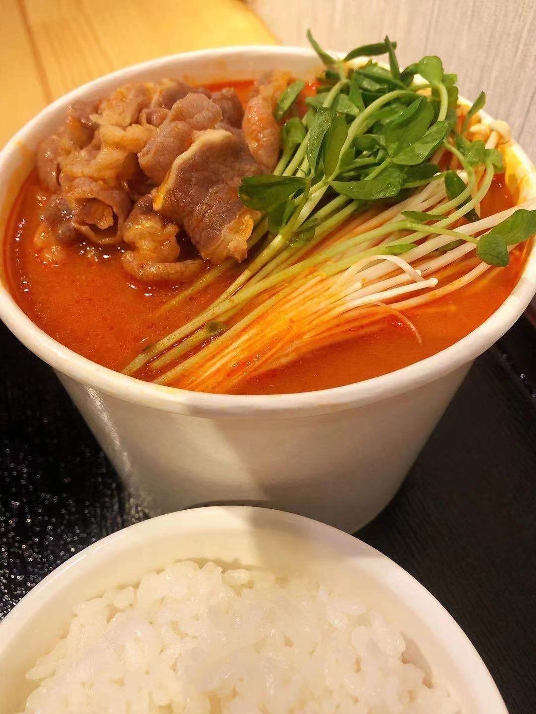 牛肉(一人前)、お新香とデザート付きの小火鍋セットです!全日提供しております!鍋のスープ(麻辣or豚骨選べます)はすべて店内で調理しており、アツアツで旨みたっぷり!麻辣は汗を流す豪快さが楽しめ、豚骨はクリーミーでコラーゲンたっぷり★牛肉は鍋でしゃぶしゃぶしてからお召し上がりください♪