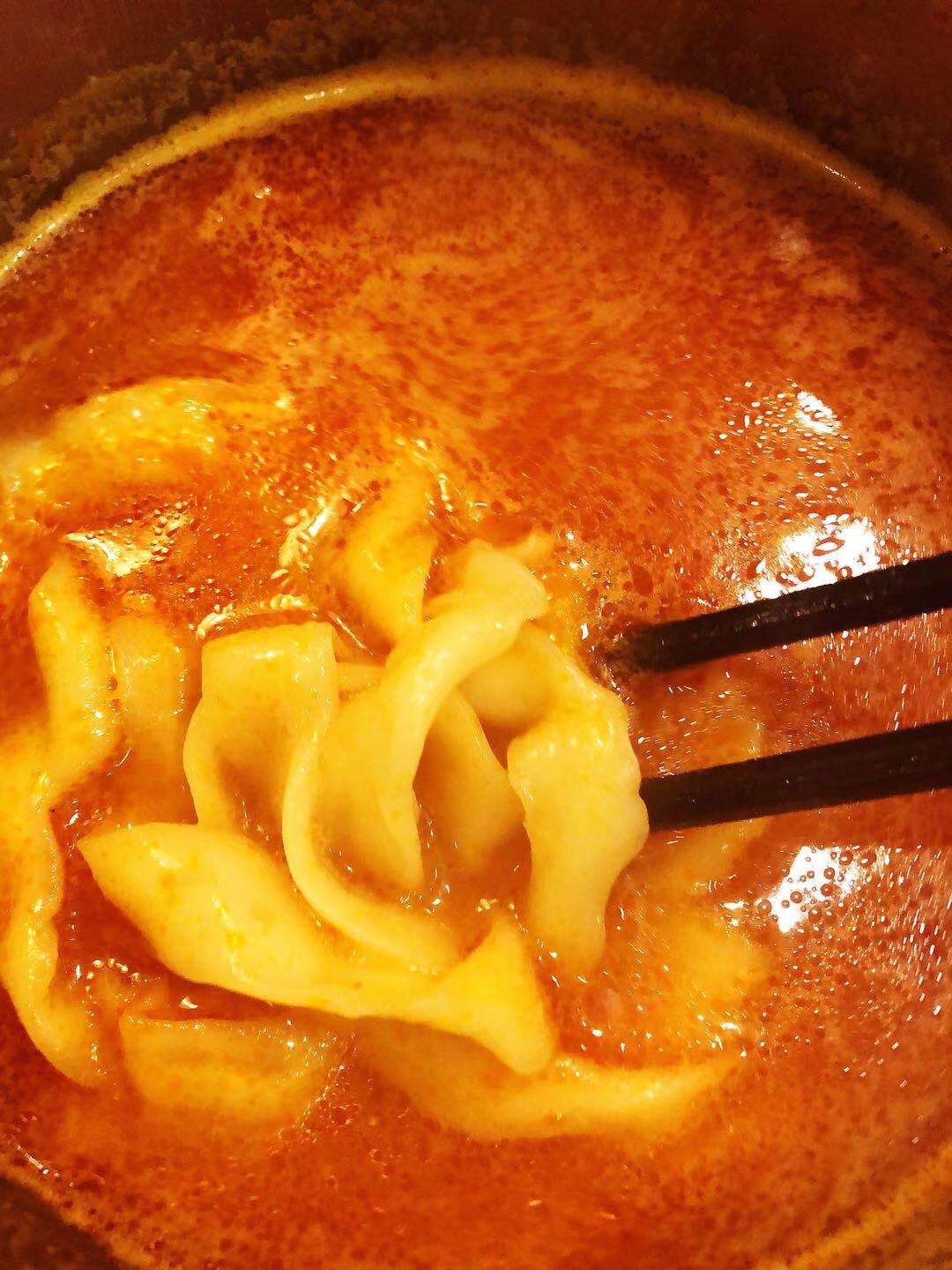 ぷっくりと大きな手作り水餃子(6個)、お新香とデザート付きの小火鍋セットです!全日提供しております!鍋のスープ(麻辣or豚骨選べます)はすべて店内で調理しており、アツアツで旨みたっぷり!麻辣は汗を流す豪快さが楽しめ、豚骨はクリーミーでコラーゲンたっぷり★水餃子も鍋に入れて一緒にお召し上がりください♪
