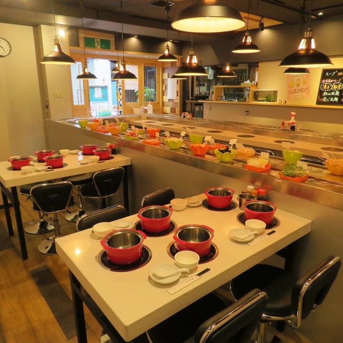我們在櫃檯座位上有20多個座位!您可以享受正宗的火鍋如壽司帶,所以請隨時與一個人或幾個朋友一起來◎◎我們正在接受20個人的租船合同,請隨時與我們聯繫請聯繫♪